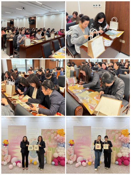 活動特邀非遺宋錦制作專業老師現場授課,從文化底蘊、材料特性、色彩搭配,到縫制、組裝、裝飾技巧,老師逐一講解并示范。參與女職工們暫別工作忙碌,專注投入手工創作,相互交流協助,現場氛圍溫馨歡樂。