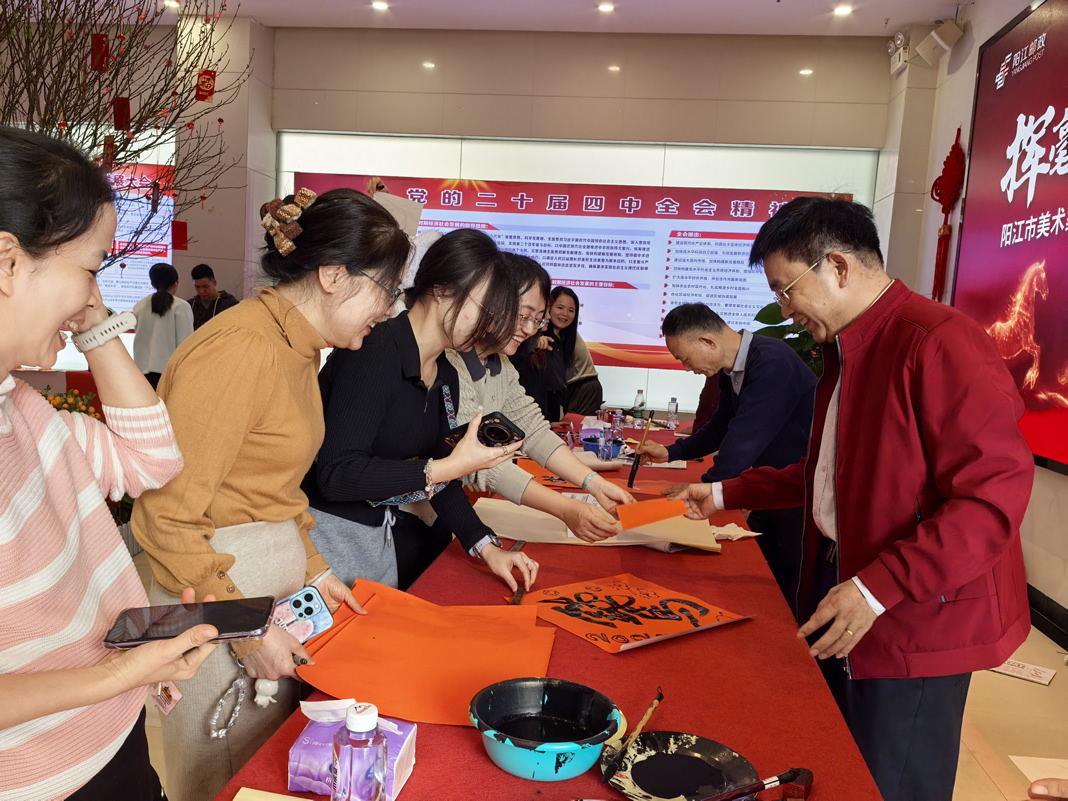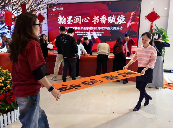 陽江市美術家協(xié)會匯聚了全市優(yōu)秀美術人才,此次特意選派書畫名家蒞臨現(xiàn)場,讓郵政員工近距離領略傳統(tǒng)書畫藝術的獨特魅力?;顒蝇F(xiàn)場墨香裊裊、春意融融,市分公司領導班子成員與各部室、直屬單位、班組員工齊聚一堂,共沐翰墨書香、共話文化傳承。