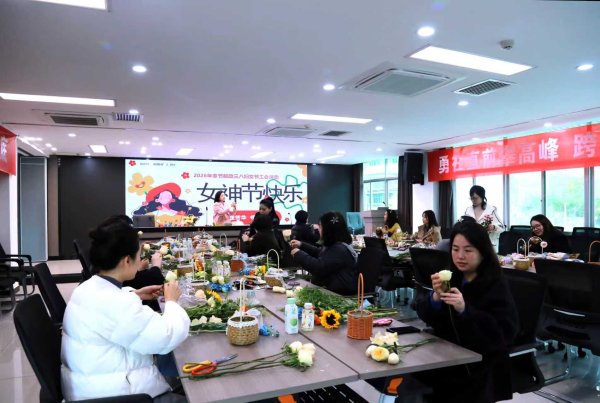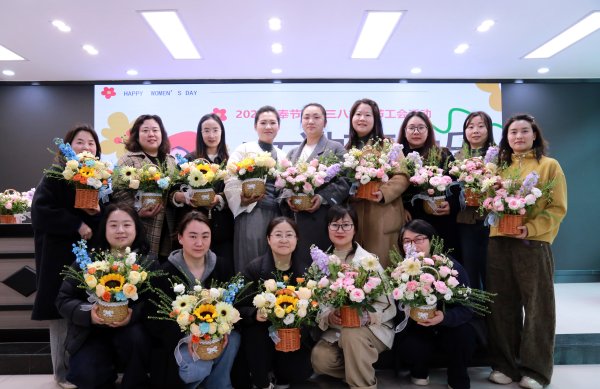 專業(yè)花藝師從花材選擇、色彩搭配、造型設(shè)計(jì)等方面細(xì)致講解插花技巧,并現(xiàn)場(chǎng)演示。實(shí)操環(huán)節(jié)中,女職工們盡情發(fā)揮創(chuàng)意自由創(chuàng)作,花藝師全程穿梭指導(dǎo)、答疑解惑。創(chuàng)作完成后,大家紛紛展示作品、分享心得,現(xiàn)場(chǎng)氛圍熱烈融洽,最后全體合影留念,定格溫馨美好瞬間。