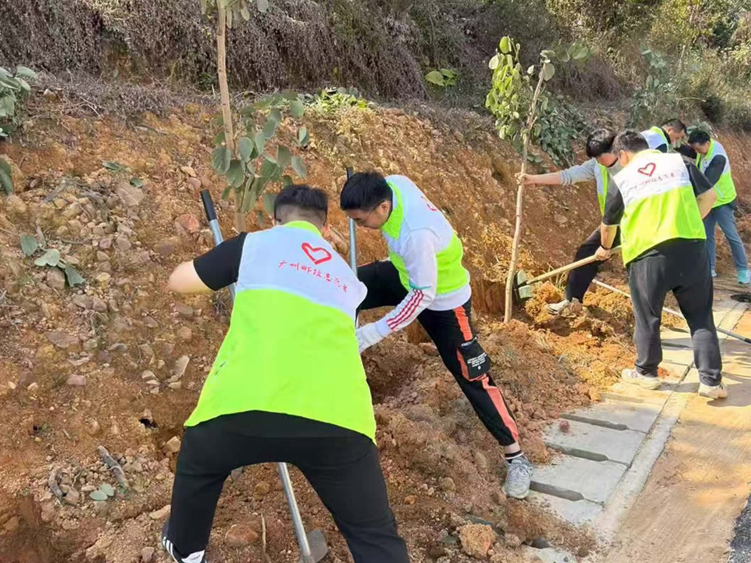 3月12日第48個植樹節當天,“青春志愿行 奮進‘十五五’”主題活動火熱開展。干部員工及青年文明號代表走進省“百千萬工程”對口幫扶的從化街口街轄區村莊,共植“綠美青年林”。大家身著志愿服裝,分工協作、揮鍬鏟土、扶苗定植、填土澆水,累計栽植宮粉紫荊、扶桑等苗木50棵,為鄉村增添新綠。活動同步融入紅色教育與文化傳承環節,參與者前往從化革命烈士紀念碑緬懷先烈、傳承基因,在中國國家版本館廣州分館(文沁閣)沉浸式觀展,探尋中華文脈、感悟時代精神,實現生態實踐、紅色教育、文化浸潤有機融合。
