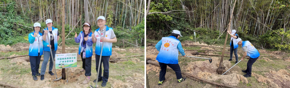 3月20日,廣州郵政工會選派4名一線職工代表,參與市總工會在從化良口鎮鴨洞河畔舉辦的“綠美廣州‘工’同行,攜手奮進‘十五五’”2026年“廣州職工公益林”植樹活動,與全市勞模先進、職工志愿者并肩植綠,展現廣州郵政職工積極參與公益、共建綠美廣州的良好風貌。