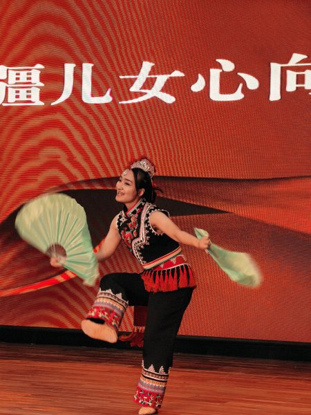 舞步間的韻:紅河郵政的朱莉,手持棕扇,舞姿翩躚。這一抹靈動的色彩,展現了云南郵政人多姿多彩的生活態度。