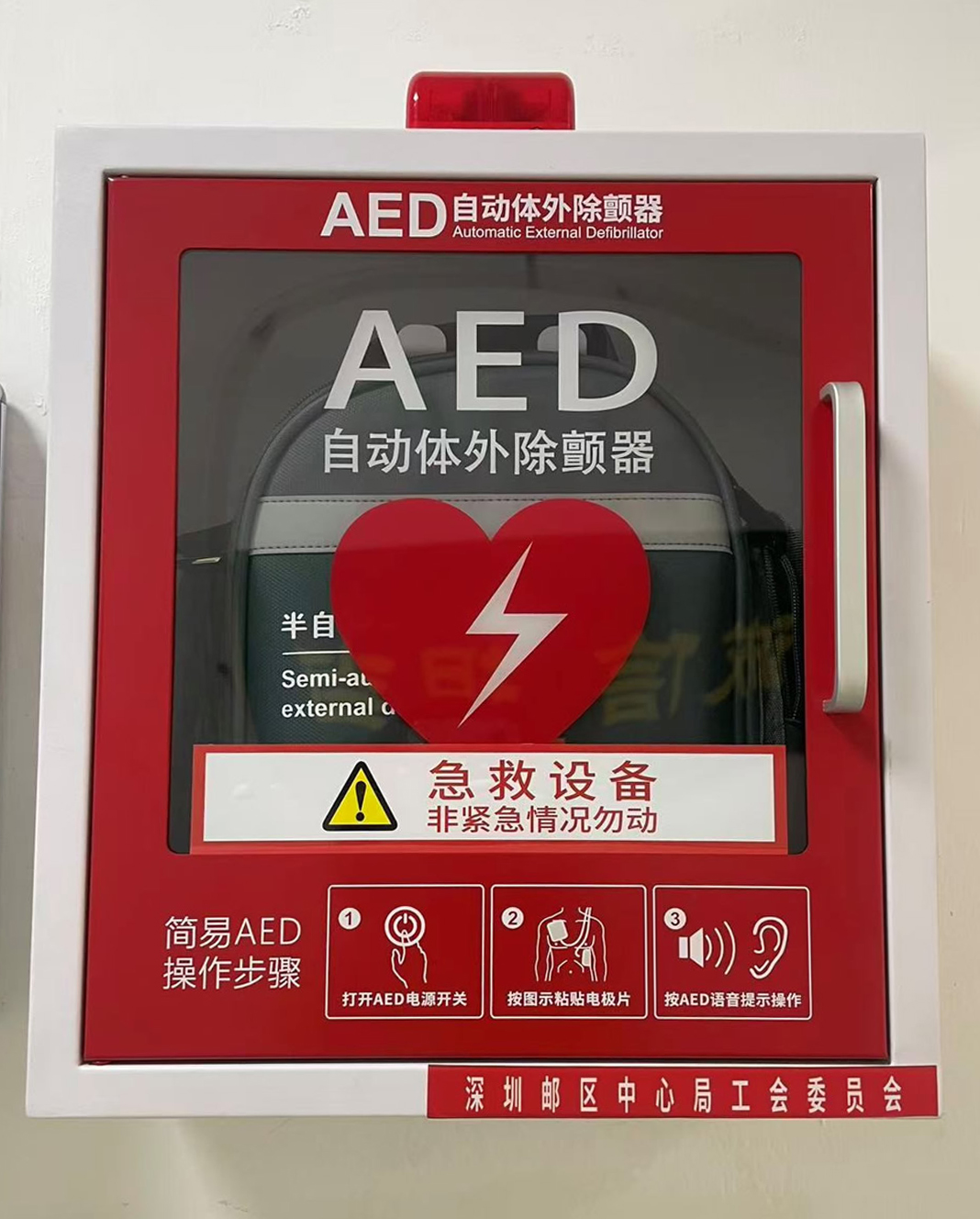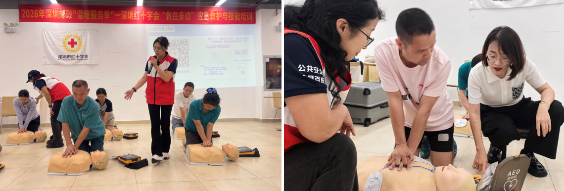 這次培訓特邀深圳市紅十字會專業導師現場授課,郵區中心員工、國通物業公司機場管理處及外包單位人員共80人參加培訓。同步推進安全硬件升級,深圳郵區中心工會在西側辦公區、大平面員工通道急救點位新增安裝2臺AED自動體外除顫儀,以急救技能+應急設備雙輪驅動,為職工生命安全保駕護航。