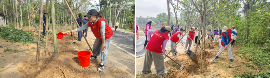 這次活動以“同植幸福樹,共建綠美家”為主題。大家熱情高漲、分工協作、默契配合,挽袖扶苗、揮鍬培土、提水澆灌,每個環節細致認真,用實干踐行植綠護綠責任,在春日里勾勒出巾幗植綠的動人身影。一片片嶄新綠意落地生根,將成為綠美家園一道特色風景線。